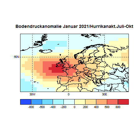 Platz 4: Hurrikanaktivität Juli – Oktober, Bodendruck Karibik:
