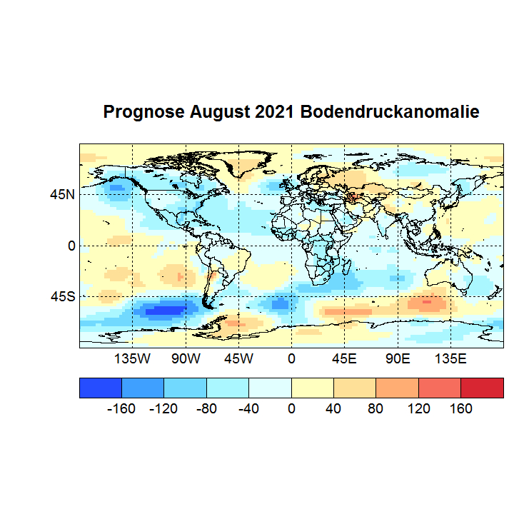 um einen Blick in die fernere Zukunft zu werfen, verwende ich die globalen SSTs (also 90°N – 90°S 0 – 360°), mit anderen Worten, den Zustand der Meere im Monat Juli. Die SSTs sind ein wichtiger Hinweisgeber, wie sich die globale Zirkulation in den nächsten Monaten entwickelt.
