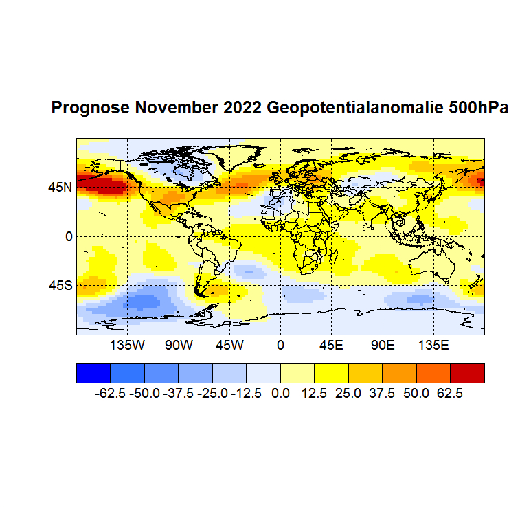 für die Prognose der Monate Dezember 2022 bis März 2023 habe ich die SSTs sowie das Geopotential 500 hPa des Monats November verwendet (Gitterpunkte 90°N – 90°S 0 – 360°).