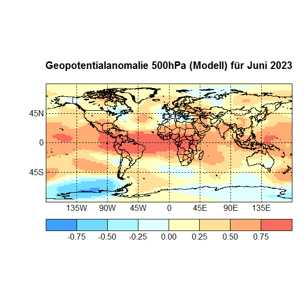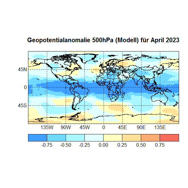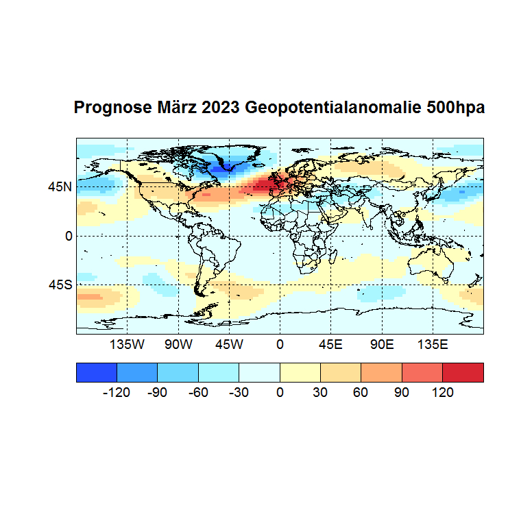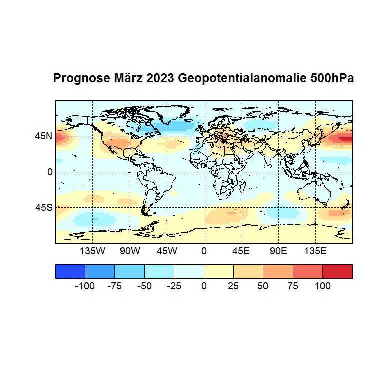 Für die Prognose der Monate April bis Juni 2023 verwende ich die SSTs des Monats März, sowie das Geopotential 500hPa, außerdem die Temperaturen und den zonalen Wind auf dem Druckniveau mit der höchsten Korrelation mit dem Zielmonat, immer Gitterpunkte 90°N – 90°S 0 – 360°.